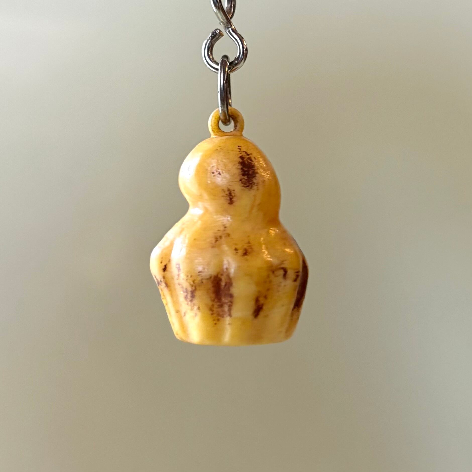 ブリオッシュのミニチュアがついたキーホルダー。