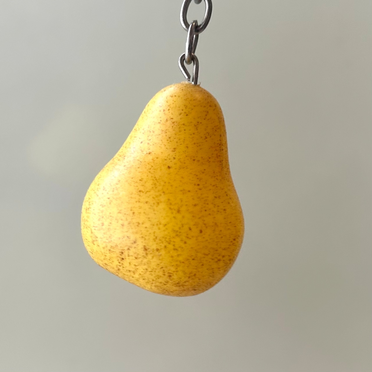 洋梨のミニチュアがついたキーホルダー。